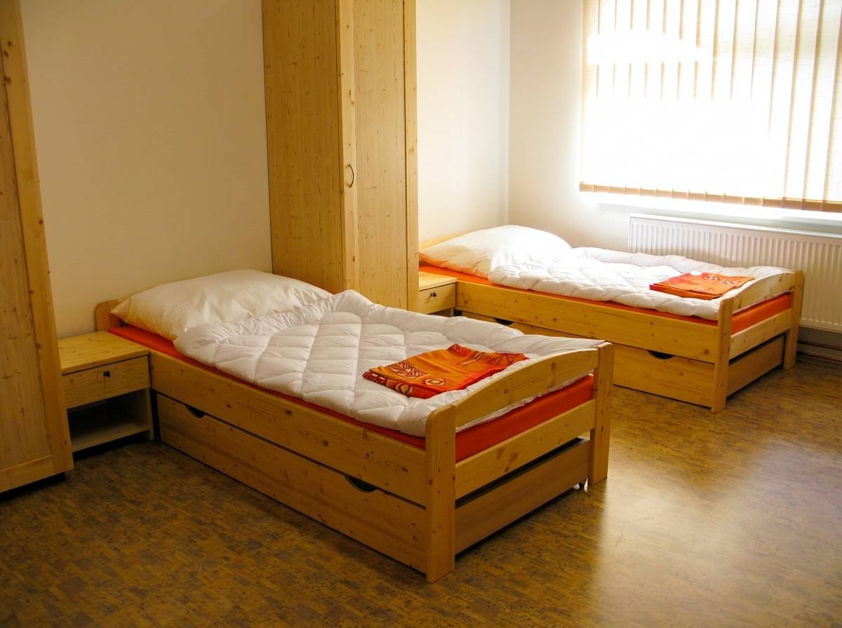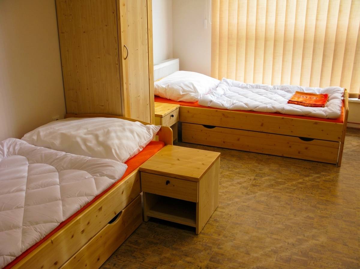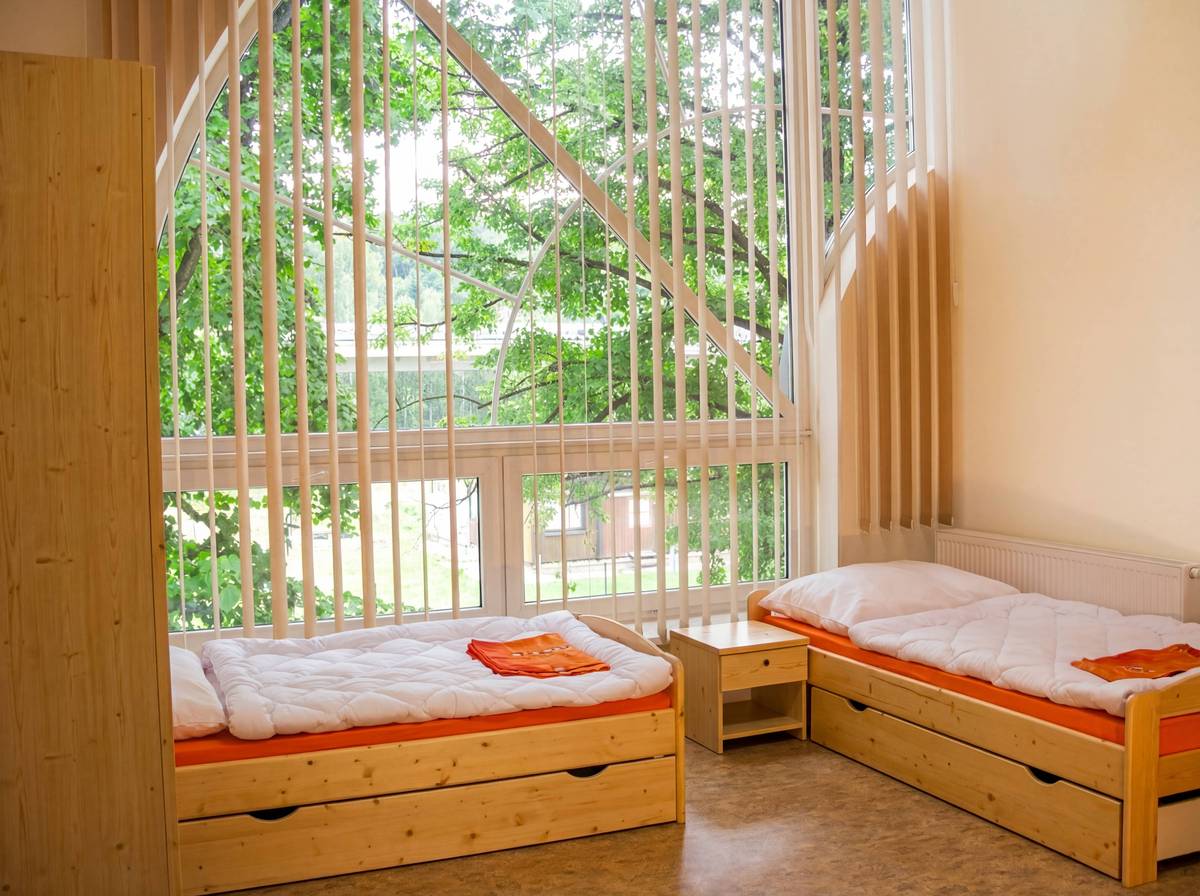 Celková kapacity ubytovny je 30 míst převážně ve třílůžkových pokojích.